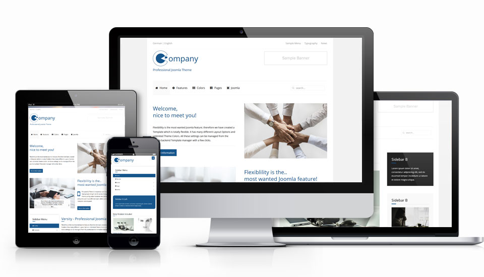 In Zukunft benötigen sie nur noch ein einziges Template zu installieren! Einfach das Design ihrer Wahl importieren und fertig! Die unterschiedlichen Designs enthalten Farben, Modul-und Menu Positionen sowie unterschiedliche Logo Positionen und vieles mehr..